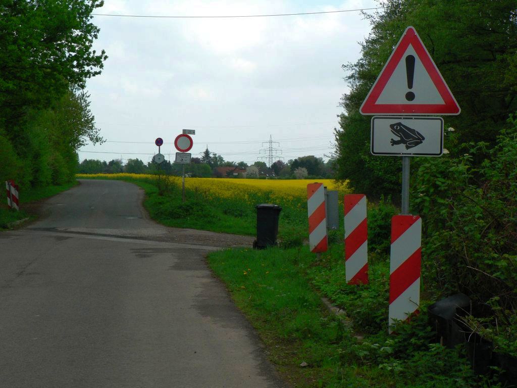 | ここにもカエル注意の看板が その先にはからし菜の花が |