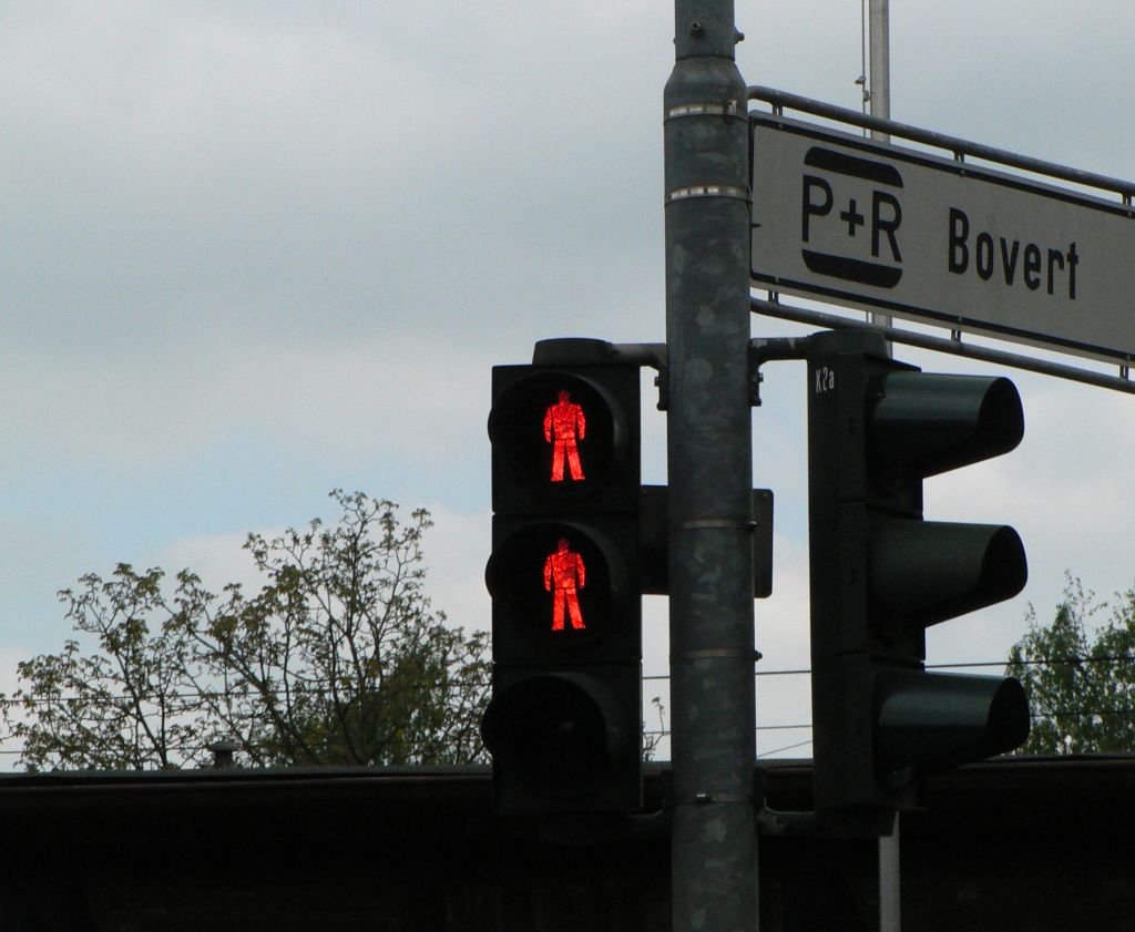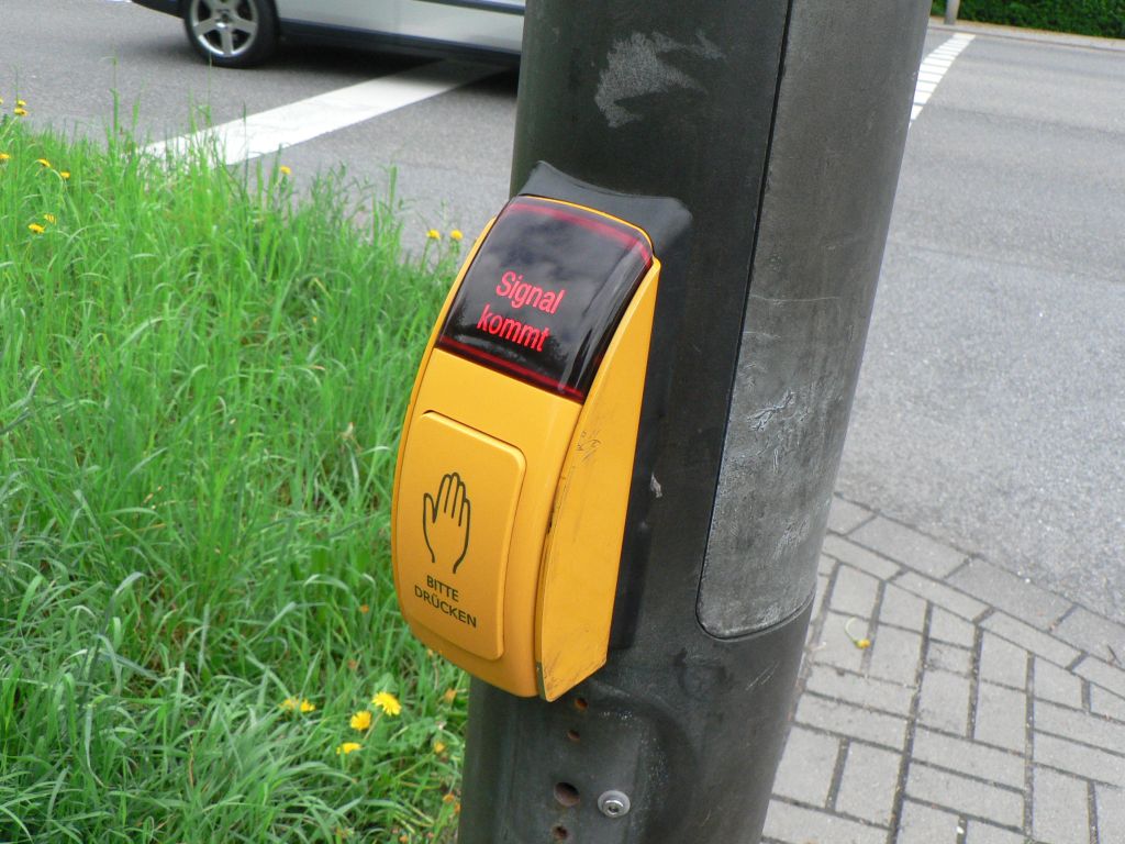 | 歩行者・自転車用の信号のボタン 押さない限り歩行者信号が変らない |