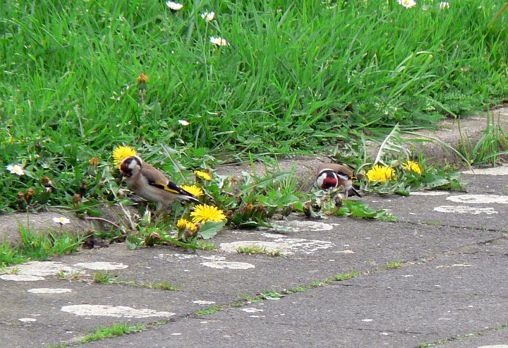 Stieglitz ゴシキヒワ タンポポを食べていた |
