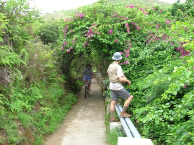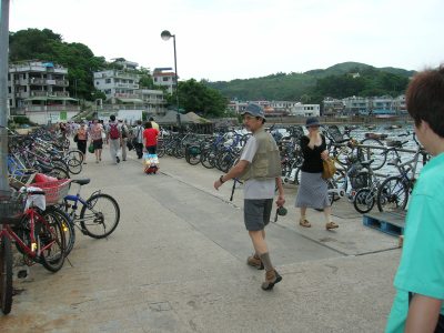 中環(セントラル)のフェリー乗り場から南Y島行きのフェリーに乗ります。 約30分ほどの船旅で島の北にある榕樹湾(Yung Shue Wan)に到着します。 船着き場には自転車がたくさん置いてあります。 島の主な交通手段は自転車です。 荷台にエンジンをつけたような小さなトラックも走っていますが、これは荷物運搬用です。 小さなシーフードレストランや雑貨店があるメインストリートを抜け、島の奥へ向かいます。 |