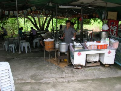 湾を大きく回り込んで行きます。 途中、場所に似つかわしくないレゲー系の音楽をガンガン鳴らしている店や、神風洞遺跡を横目に見ながら歩いて行くと、お寺が見えます。 ゴールはこの先です。 何軒か並ぶシーフードレストランの中で帰りのフェリー代がただになる店で食事をしました。日本人用のメニューがあったのですが、高い食材ばかりの料理で辟易しました。 食事をしていると大雨になり、二人で顔を見会わせました。 濡れずにすんで良かった。大久保さん曰く、「おれは晴れ男だから」。感謝! 雨はその後もふりつづきました。 |