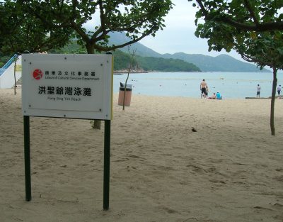 洪聖爺湾(Hung Shing Ye Wan)の海岸に到着。シャワー施設などもあり、家族連れで賑わっています。 皆気持ち良さそうに泳いでいました。 欧米(オーストラリアかも)系が多いのは、香港で働く西洋人は南Y島に住んでいる人が多いからではないでしょうか。 |