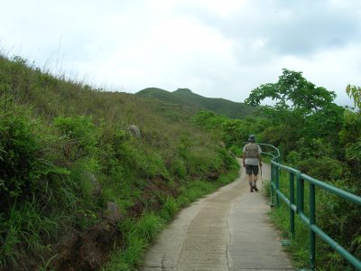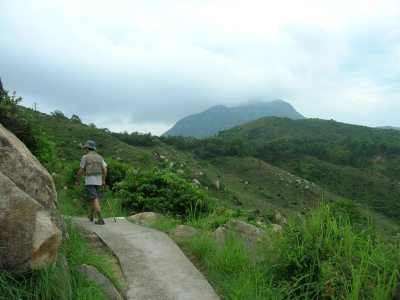 さらに歩いて行くと前方に山が見えて来ました。 山地塘(Shan Tei Tong)という山で、標高は353mです。 ハイキング道はそこまでは登りません。 |