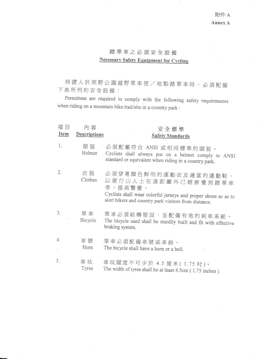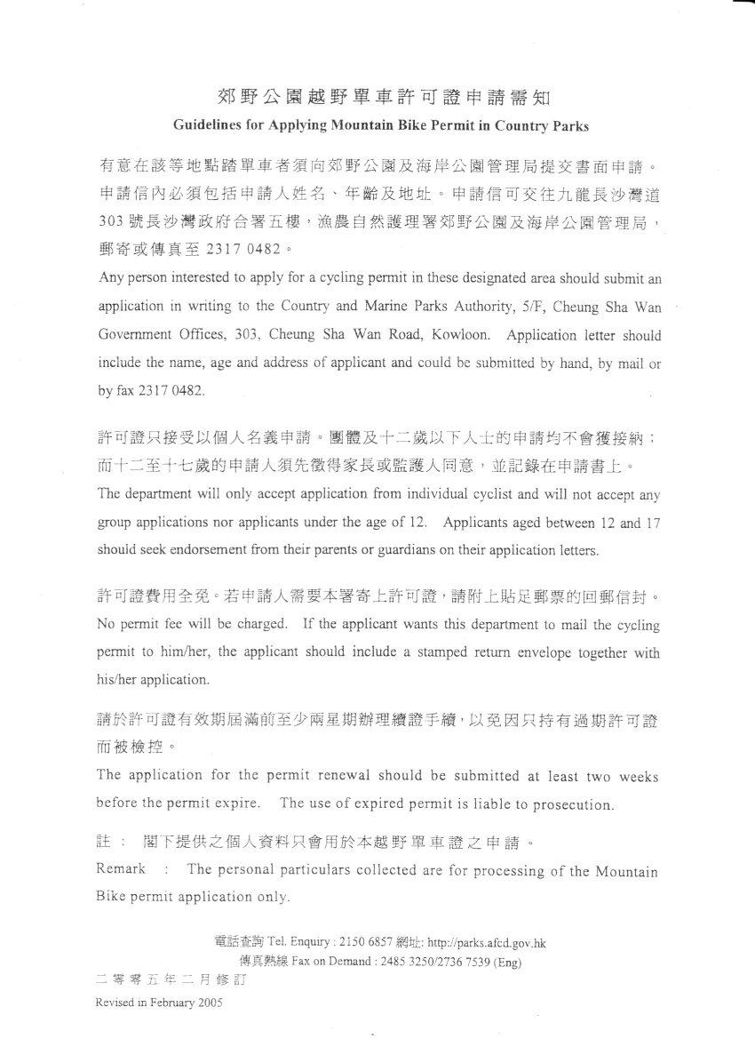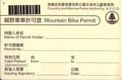 香港で、MTBに乗るには申請書が必要と、自転車屋さんに言われたので申請しました。