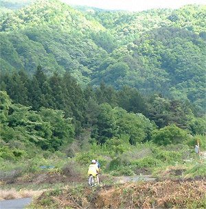 これが新緑の気持ちいい道でした。若干のアップダウンはありましたが楽しく走れました。