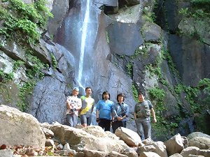 不動の滝の入口で、タンデム夫妻は待つとのことで、その他大勢は滝を目指します。
