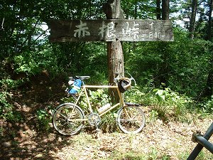 峠は静かでした。木で出来た趣のある看板が我々を待ち受けてくれました。