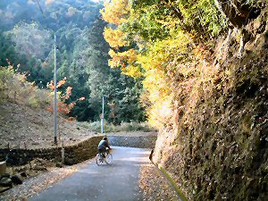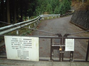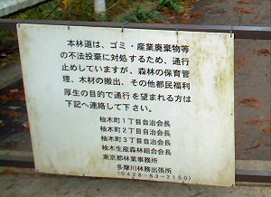 よく見ると、ゴミの不法投棄がひどいので通行禁止に したそうです。自転車としてはラッキー。 ということで、脇をすり抜けて下りました。 |