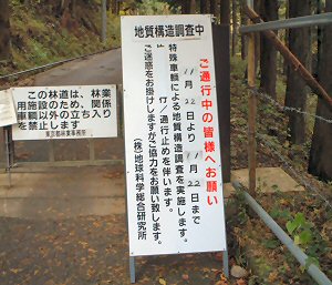 下ることしばし。 写真は撮らなかったのですが、地球化学研究所の 最新鋭設備がありました。 それは、真っ白なトラックが数台。 しかも、振動を起こす装置つきでした。 山の中にいきなり出くわして本当にビックリ。 |