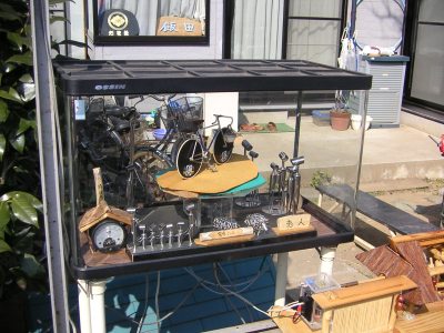 小田急線をくぐった後、太陽電池で色々動かしている面白いオブジェのある家がありました。 自転車が、しかも、ケルビムのシールが貼った自転車が太陽電池で廻っていました。 どなたもいらっしゃらなかったので、お話しを伺えなかったのが残念でした。 |