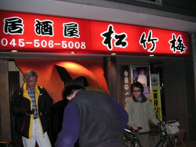 しかし、そこはACFの面々。次は、私の好物のすじみそを食べに鶴見に戻ります。 鶴見の駅から歩いて5分ほど東京寄りにある松竹梅。居酒屋ですが、すじみそはお薦め。 ただし、辛いのが駄目な人は遠慮してくださいね。 楽しい一日が終わりました。このあとは、さすがに三々五々解散となりました。 |