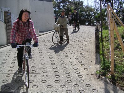 三ッ池公園の小高い丘で昼食を取り、走りはじめます。 三ッ池公園は窪地にあり、必死に登ったかと思うと、こんな急な下りが待っていました。 |