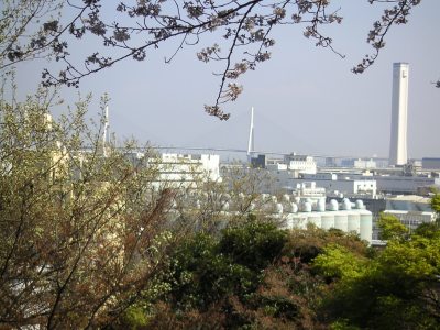 新子安の神の木公園からのベイブリッジのながめです。 もう一息で、おなじみのキリンビアビレッジです。 |
