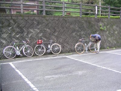 橋本さんがいつも止められている駐車場に車をデポし、愛車を組み立てます。 |