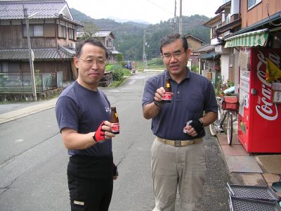 ふと現れたお店で小休止 井川さんの会社の製品で皆で元気づけです。 |