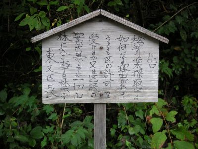 もう一つの名物が松茸です。 どうしてもこのような、無粋な看板が目についてしまいます。 |